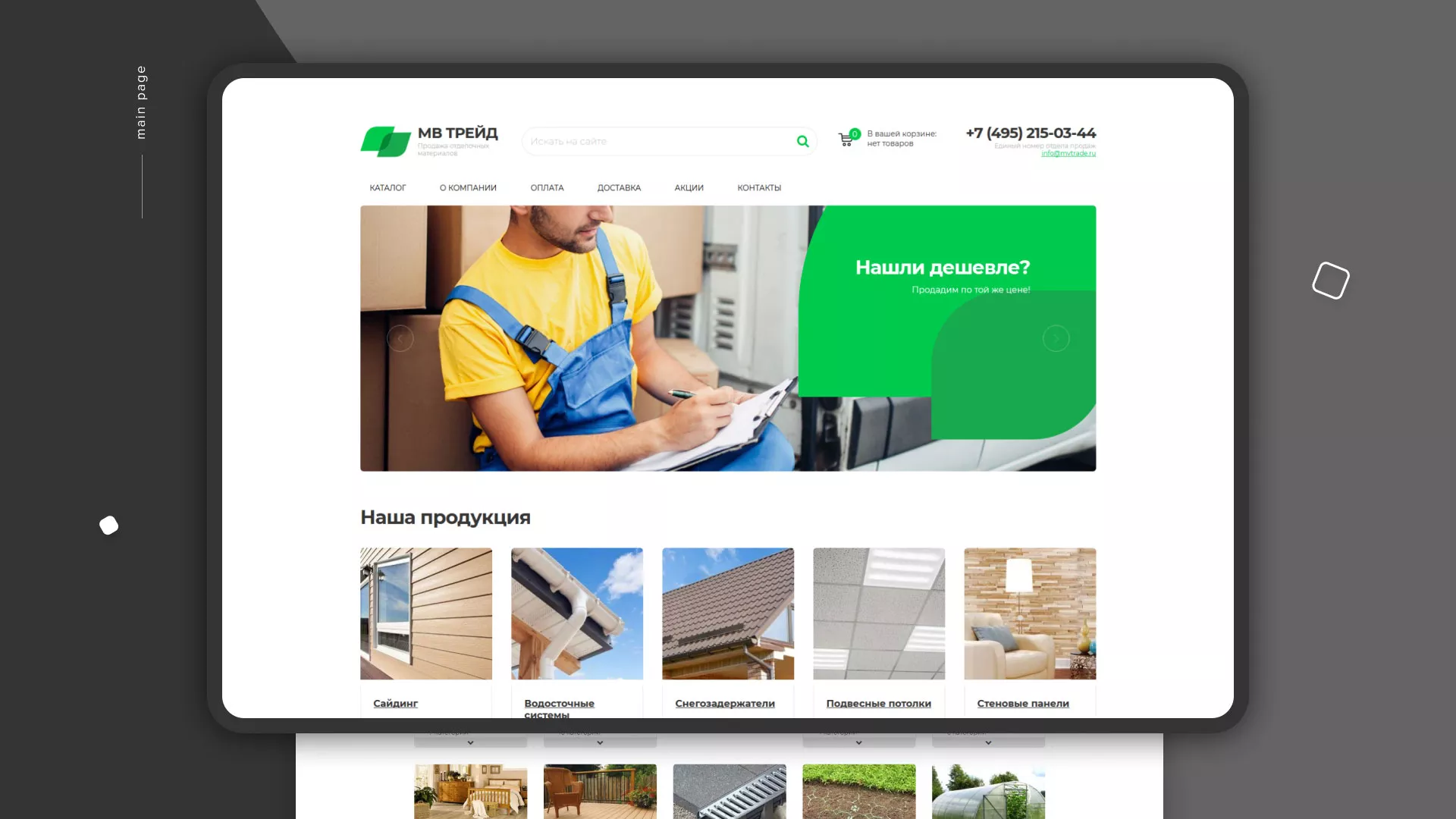 Компания «МВ Трейд» осуществляет продажу сайдинга и отделочных материалов через интернет со своих складов в Зеленогорске. За 17 лет компания зарекомендовала себя надежным поставщиком. Товары реализуются как оптом, так и в розницу.
